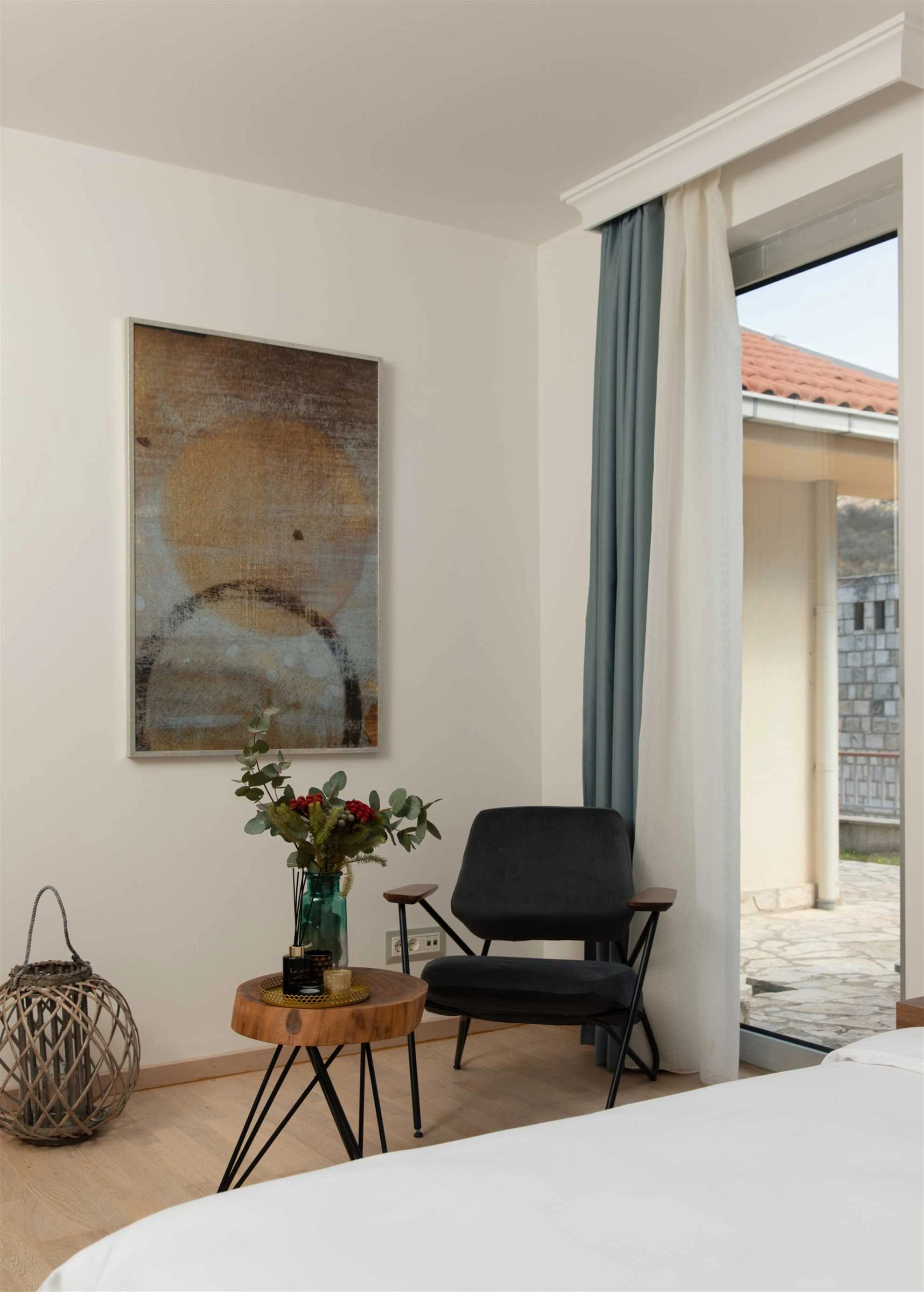 Tsar's Village 2 is a luxurious 4-star villa nestled in the serene hills above the renowned Sveti Stefan islet, offering an idyllic retreat for those seeking tranquility and breathtaking vistas. This elegant property spans 160 m² and comfortably accommodates up to six guests across three well-appointed bedrooms and three modern bathrooms.