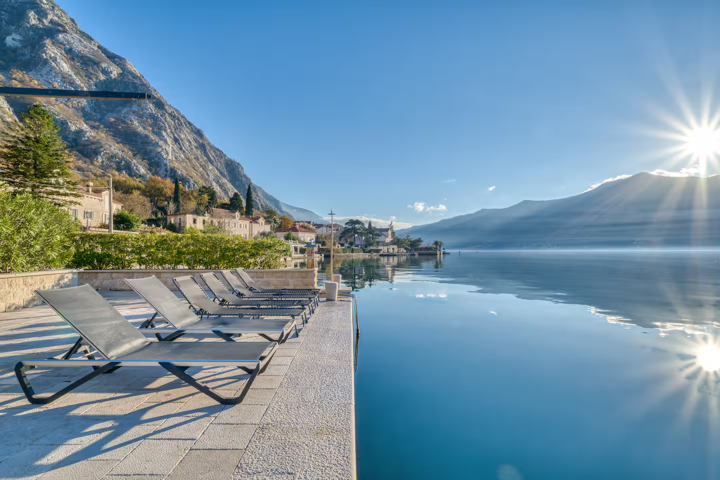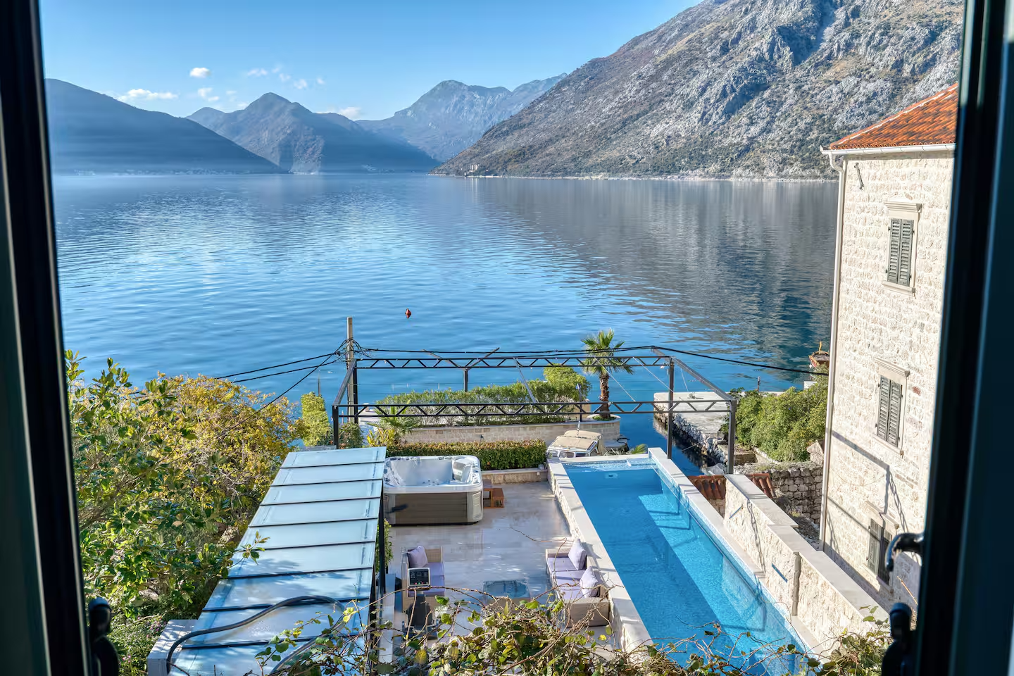 Villa Riviera Privata is an exclusive waterfront villa on the Bay of Kotor, offering complete privacy, direct sea access, and a private dock for boats. The property features a pool overlooking the water, spacious terraces, and elegant interiors designed for comfortable group stays. Combining secluded tranquility with easy access to historic coastal towns, it is ideal for luxury holidays and private retreats on Montenegro’s Adriatic coast.